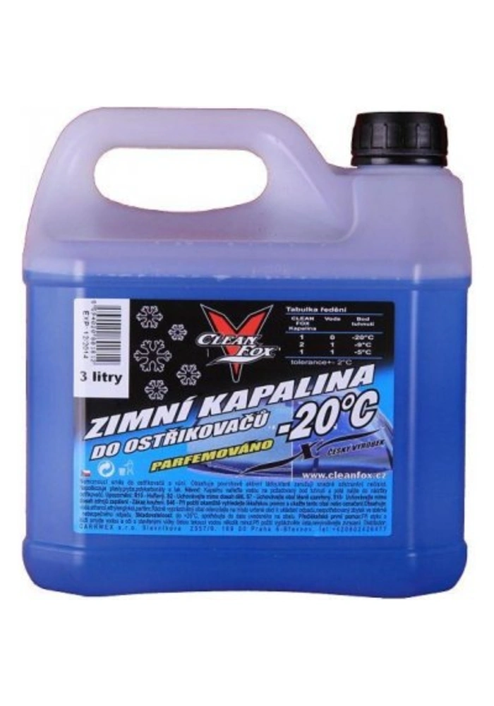 Nemrznoucí směs do ostřikovačů Cleanfox s vůní obsahuje povrchově aktivní látky, které zaručují snadné odstranění nečistot. Nepoškozuje plasty, pryže, polykarbonáty a lak.Více informací