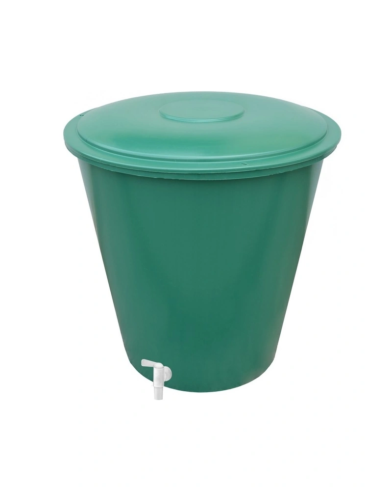 Plastový sud na dešťovou vodu s víkem je vhodný pro umístění pod okap, kde do něj nateče čistá dešťová voda, kterou poté můžete využít pro zalévání.