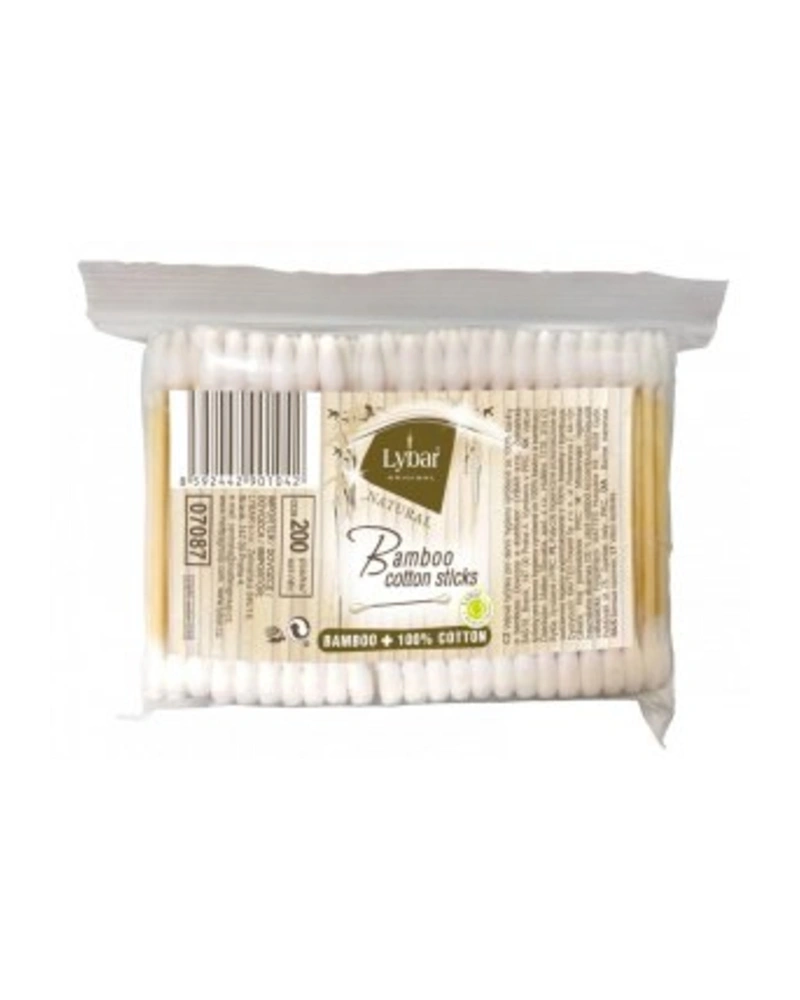 Vatové tyčinky pro každodenní hygienu vyrobené ze 100% bavlny a bambusu jsou šetrné k životnímu prostředí.